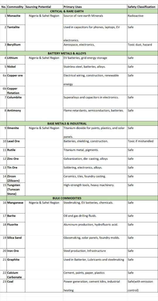 GEZ Mining Hub is actively involved in the development of licensed mining concessions and beneficiation covering commercially viable solid minerals. Our projects are supported by preliminary geological data, field assessments, and scalable production models designed to meet international off-take and export standards. Commercially, we are structured to engage in long-term supply arrangements, joint ventures, and off-take agreements with credible partners, supported by transparent pricing mechanisms and internationally accepted inspection standards (e.g., SGS, CCBC etc)